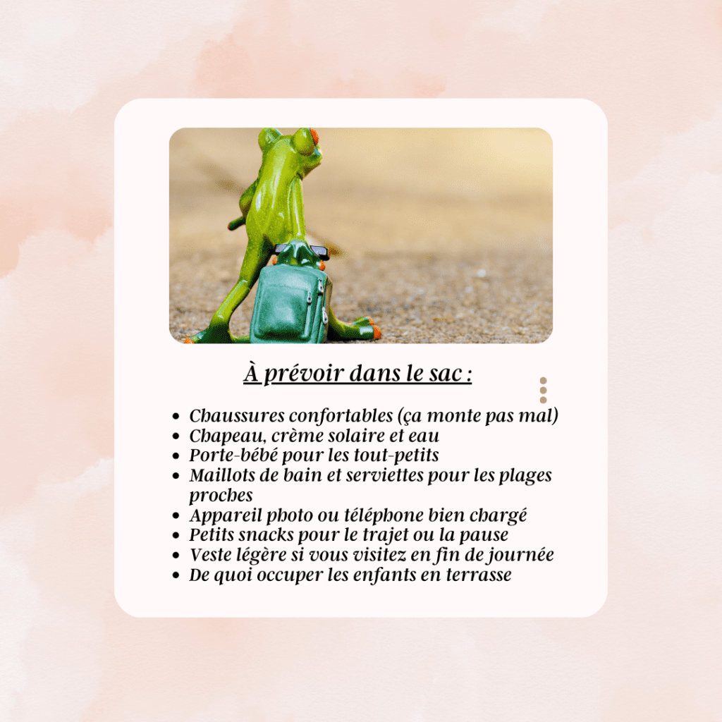 🥾 Le village est assez pentu et les ruelles pavées ne sont pas toujours faciles en poussette. Porte-bébé recommandé, mais ce n’est pas impossible avec une bonne poussette tout-terrain.